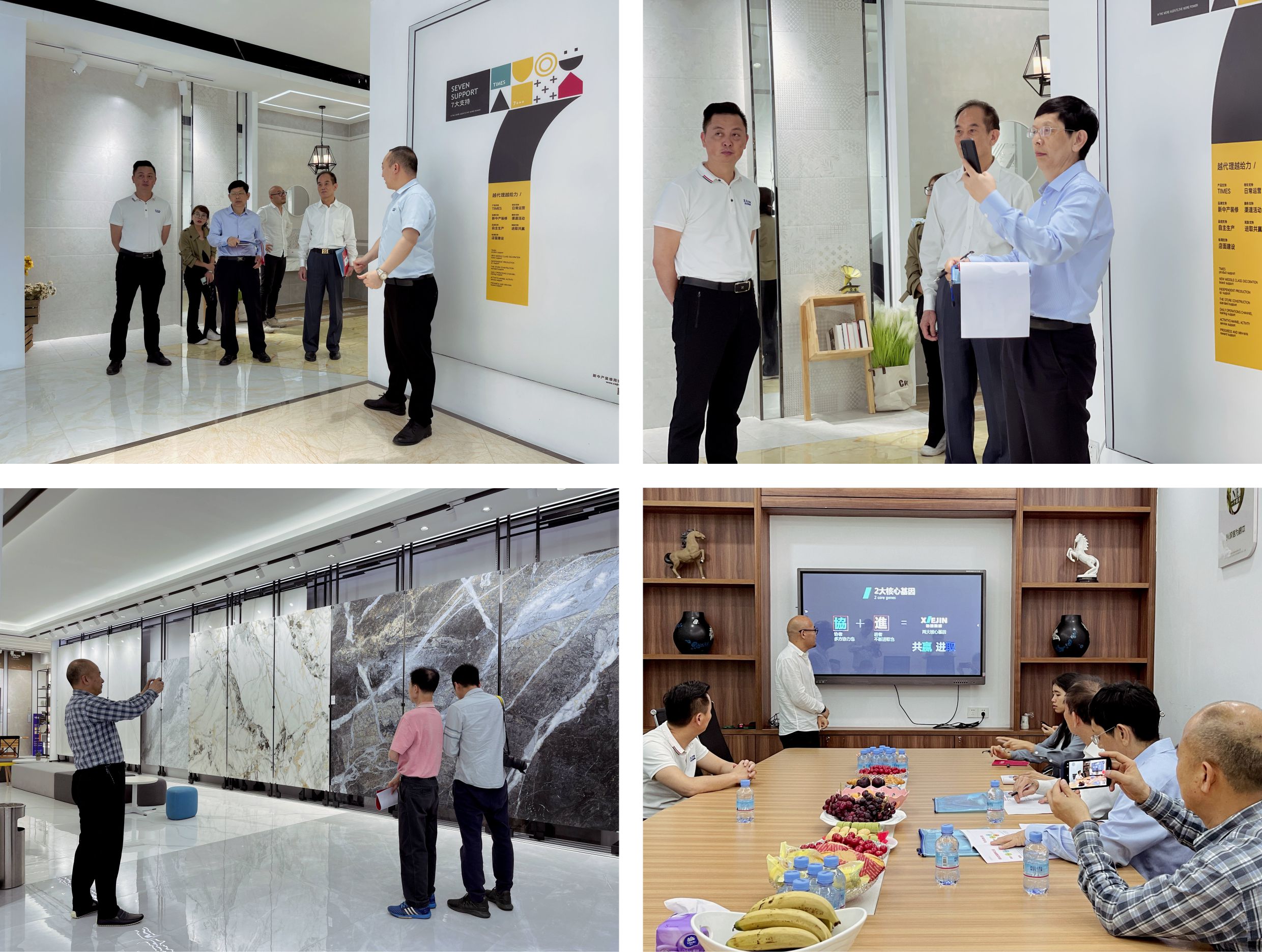 2021年4月10日下午2:30,中国陶瓷行业新锐榜评委团莅临协进企业进行深入的考察交流,协进品牌总经理林总、协进企业市场总监石总等领导出席接待。