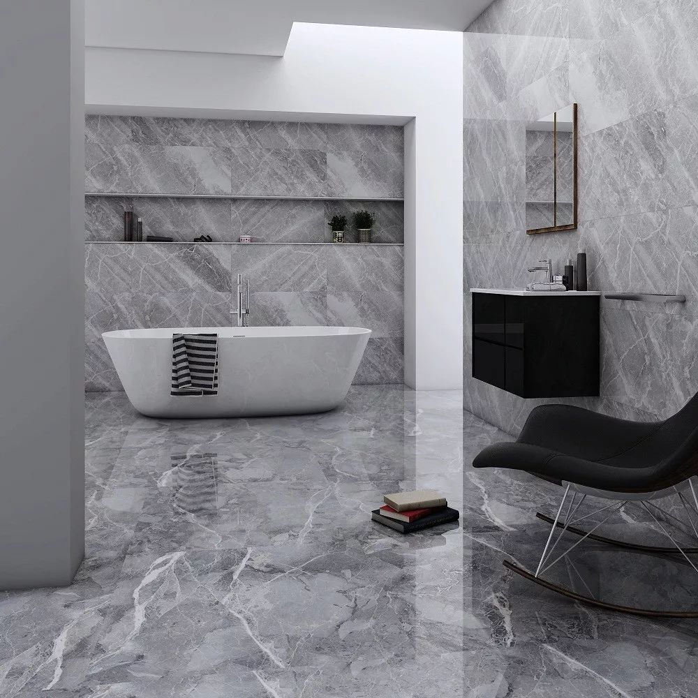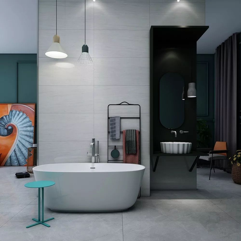 “奢瓷”系列产品长宽比例为2:1,相教于传统800x800大理石产品,无需切割即可上墙铺贴,更由于表面效果与大理石工艺一致,可以做到奢瓷上墙大理石下地的应用搭配,形成珠联璧合的装饰效果。