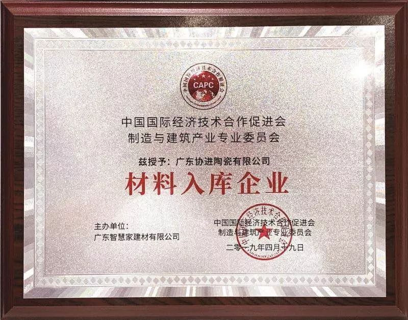 作为一家紧跟时代发展步伐的企业,协进企业在产品研发与产品应用上不断开拓创新。此次由中促会制造与建筑产业专业委员会授予的“材料入库企业”奖项,证明了业内外对协进企业品牌实力的肯定支持。