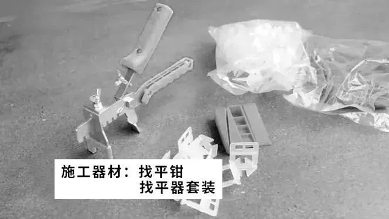 首先我们要准备瓷砖粘结剂、三孔玻璃吸、锯齿状抹灰器、灰勺、橡胶锤、靠尺、找平钳套装以及清洁抹布。