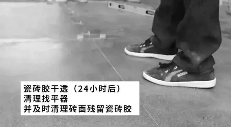 铺贴完成24小时后,可进行填缝施工,填缝应选用柔性或弹性材料填充。